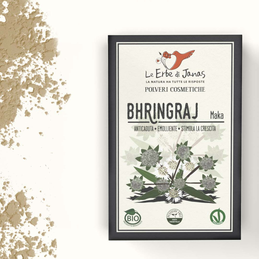 viene utilizzata contro la caduta eccessiva dei capelli, principio di calvizie e alopecia, ma anche in caso di incanutimento precoce. Il Bhringraj è utilizzato tradizionalmente per tutti i tipi di capelli ed in special modo per la cura dei capelli neri.