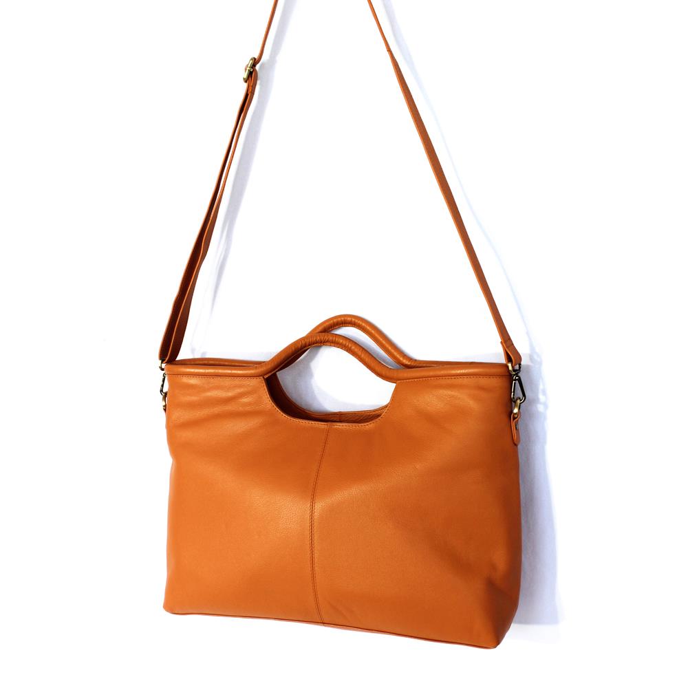 Borsa a mano grande in morbida nappa bovina con tracolla rimovibile e regolabile, manici tubolari.