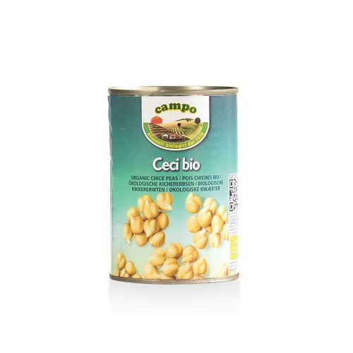 I ceci biologici in lattina della cooperativa Campo sonoย gustosi,ย consistentiย eย pronti allโusoย perchรฉ giร cotti in acqua.